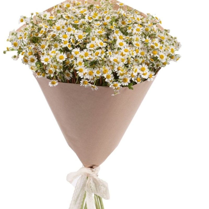 Букет состоит из 25 веток танацетума, крафт, атласная лента.